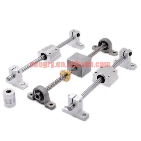 1セット500mm水平光軸、T8リードスクリュー付きデュアルレールシャフトサポートピローブロックベアリングフレキシブルシャフトカップリングセット